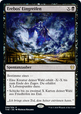 | Rules | Choose one — • Target creature gets -X/-X until end of turn. You gain X life. • Exile up to twice X target cards from graveyards. |
