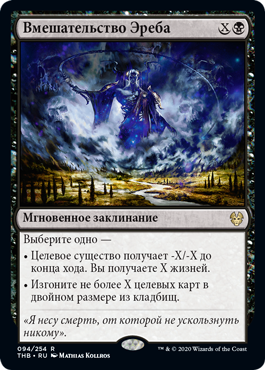 | Rules | Choose one — • Target creature gets -X/-X until end of turn. You gain X life. • Exile up to twice X target cards from graveyards. |