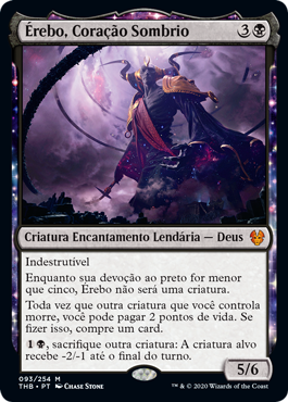 | Rules | Indestructible As long as your devotion to black is less than five, Erebos isn't a creature. Whenever another creature you control dies, you may pay 2 life. If you do, draw a card. , Sacrifice another creature: Target creature gets -2/-1 until end of turn. |