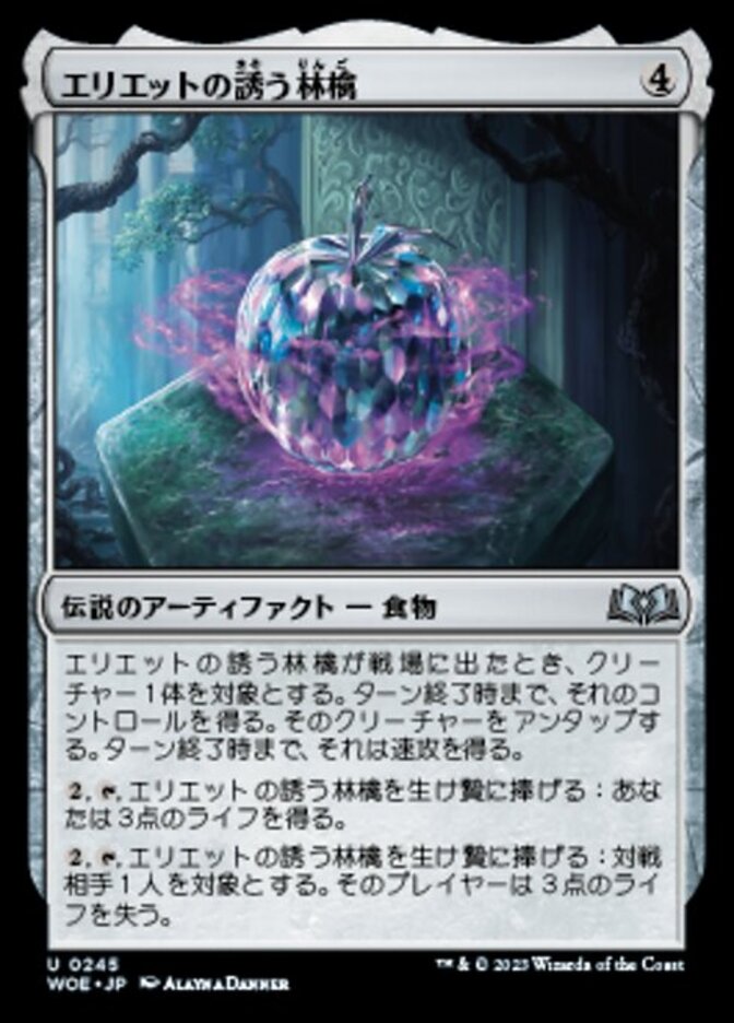 | Rules | When Eriette's Tempting Apple enters the battlefield, gain control of target creature until end of turn. Untap that creature. It gains haste until end of turn. , , Sacrifice Eriette's Tempting Apple: You gain 3 life. , , Sacrifice Eriette's Tempting Apple: Target opponent loses 3 life. |