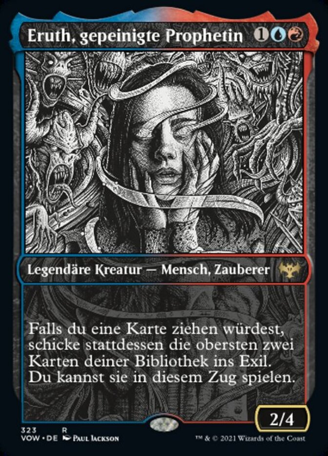 | Flavor | She is cursed with visions of monsters and suffering . . . and all her visions come true. |