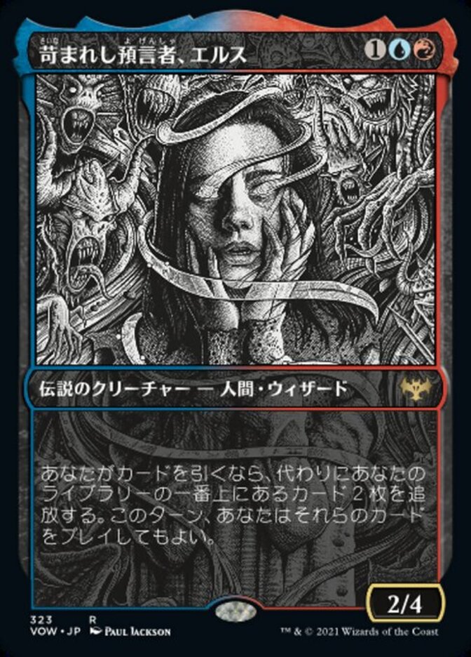 | Flavor | She is cursed with visions of monsters and suffering . . . and all her visions come true. |