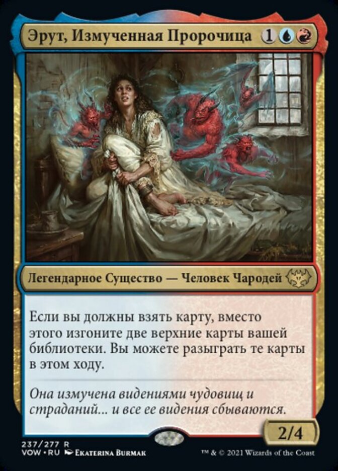| Flavor | She is cursed with visions of monsters and suffering . . . and all her visions come true. |
