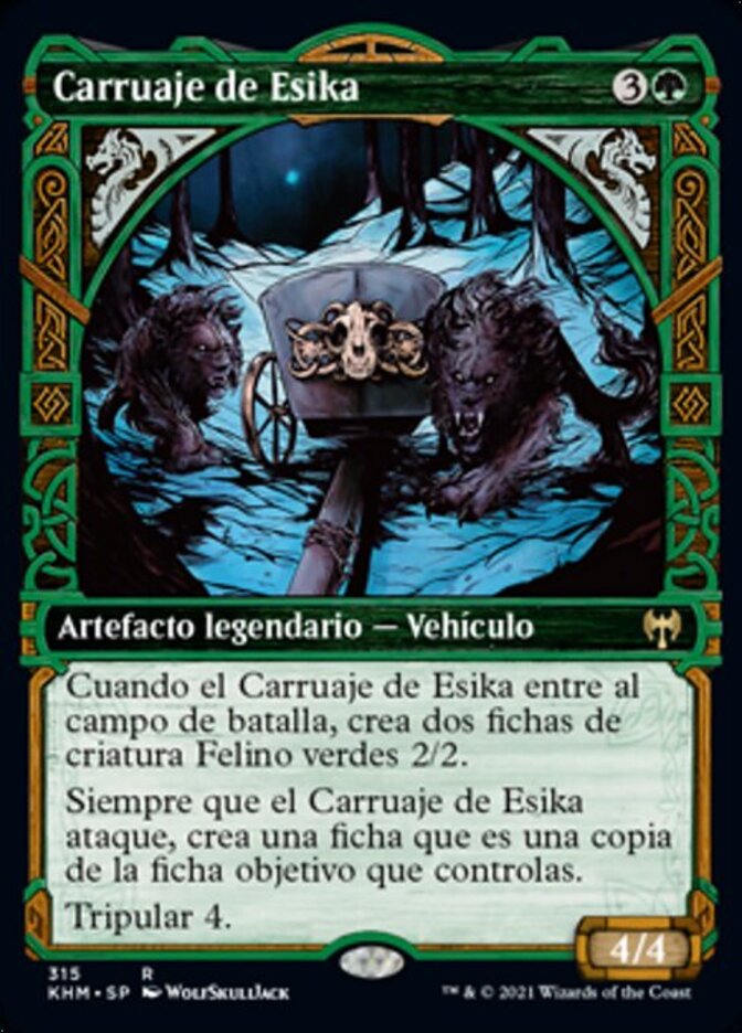 | Rules | When Esika's Chariot enters the battlefield, create two 2/2 green Cat creature tokens. Whenever Esika's Chariot attacks, create a token that's a copy of target token you control. Crew 4 |