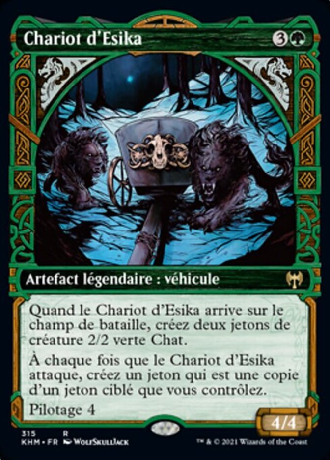 | Rules | When Esika's Chariot enters the battlefield, create two 2/2 green Cat creature tokens. Whenever Esika's Chariot attacks, create a token that's a copy of target token you control. Crew 4 |