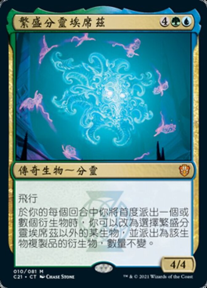 | Rules | Flying The first time you would create one or more tokens during each of your turns, you may instead choose a creature other than Esix, Fractal Bloom and create that many tokens that are copies of that creature. |