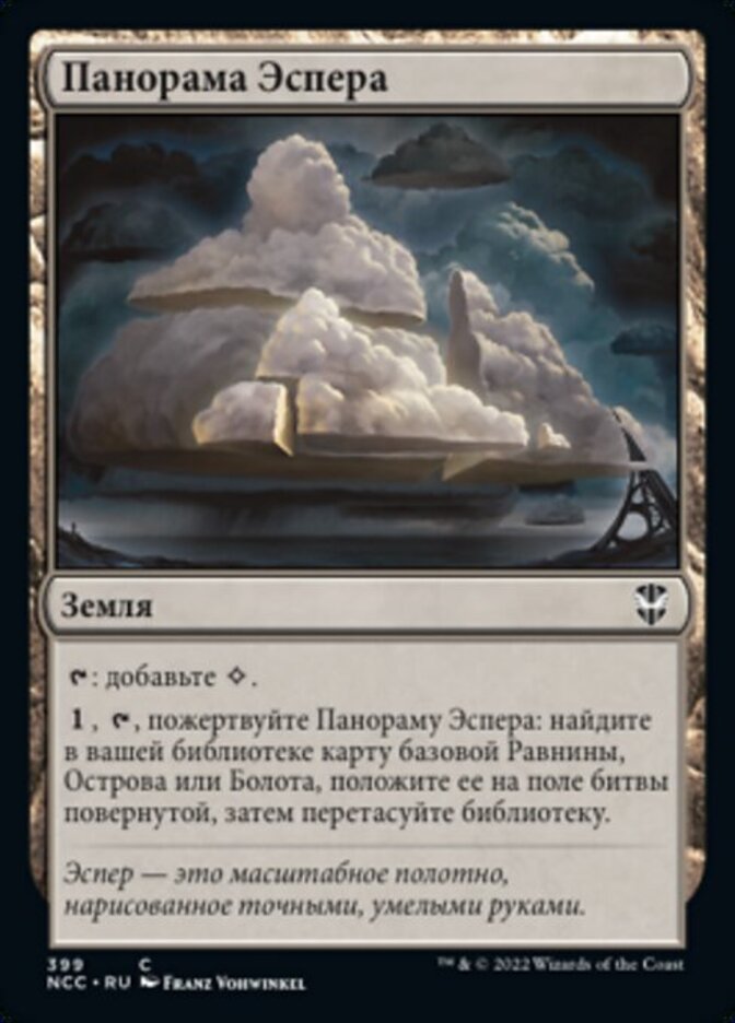 | Rules | : Add . , , Sacrifice Esper Panorama: Search your library for a basic Plains, Island, or Swamp card, put it onto the battlefield tapped, then shuffle. |