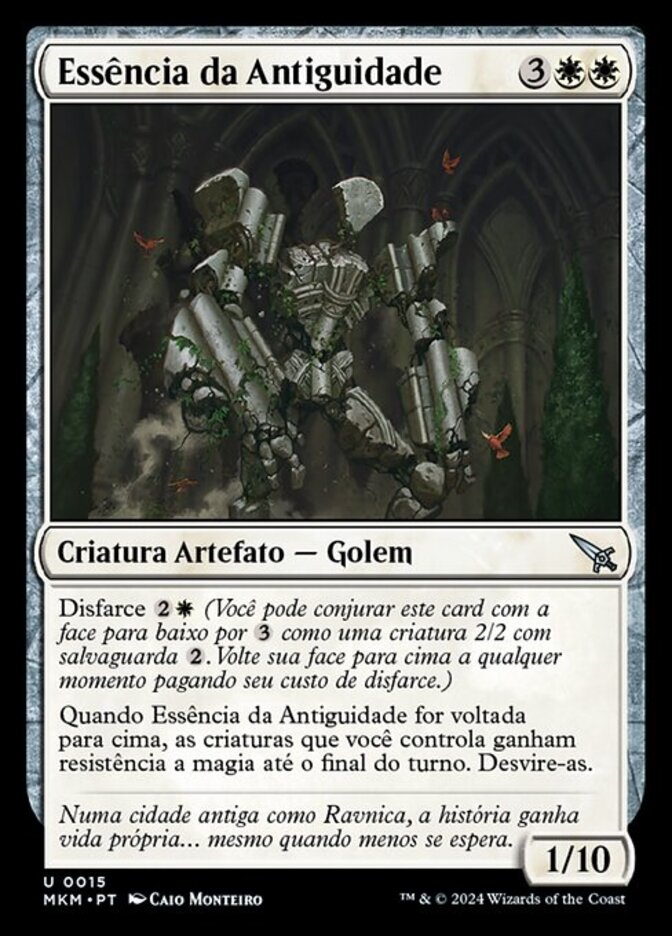 | Rules | Disguise (You may cast this card face down for as a 2/2 creature with ward . Turn it face up any time for its disguise cost.) When Essence of Antiquity is turned face up, creatures you control gain hexproof until end of turn. Untap them. |
