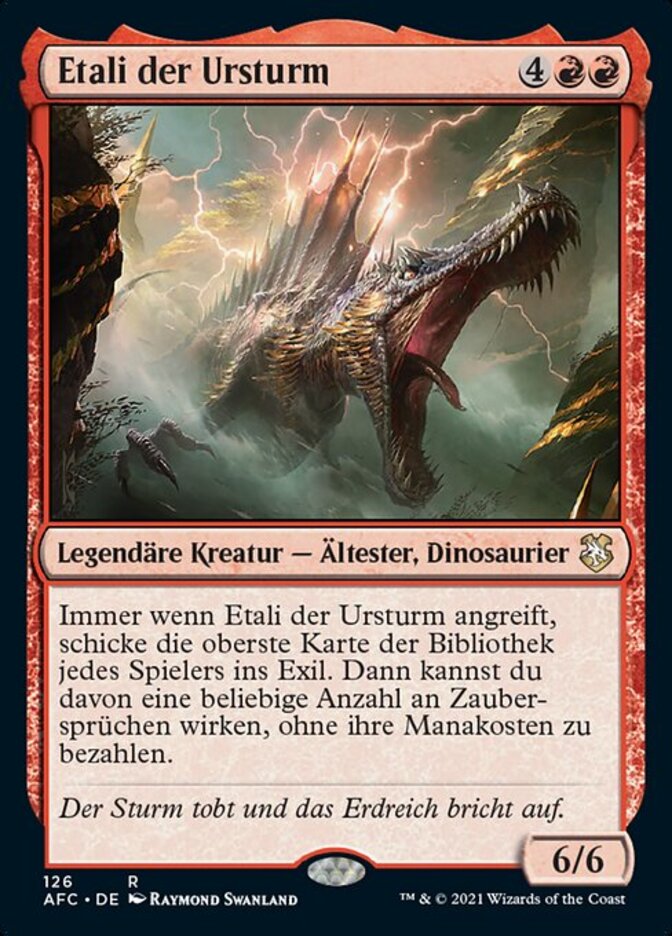 | Rules | Whenever Etali, Primal Storm attacks, exile the top card of each player's library, then you may cast any number of spells from among those cards without paying their mana costs. |