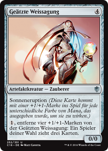 | Rules | Sunburst (This enters the battlefield with a +1/+1 counter on it for each color of mana spent to cast it.) , Remove four +1/+1 counters from Etched Oracle: Target player draws three cards. |