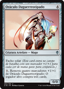 | Rules | Sunburst (This enters the battlefield with a +1/+1 counter on it for each color of mana spent to cast it.) , Remove four +1/+1 counters from Etched Oracle: Target player draws three cards. |