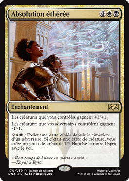 | Rules | Creatures you control get +1/+1. Creatures your opponents control get -1/-1. : Exile target card from an opponent's graveyard. If it was a creature card, you create a 1/1 white and black Spirit creature token with flying. |