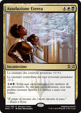 | Rules | Creatures you control get +1/+1. Creatures your opponents control get -1/-1. : Exile target card from an opponent's graveyard. If it was a creature card, you create a 1/1 white and black Spirit creature token with flying. |