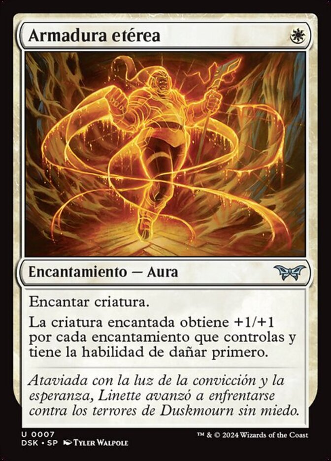 | Rules | Enchant creature Enchanted creature gets +1/+1 for each enchantment you control and has first strike. |