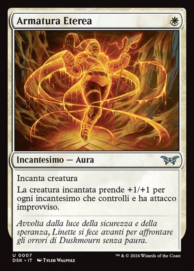 | Rules | Enchant creature Enchanted creature gets +1/+1 for each enchantment you control and has first strike. |