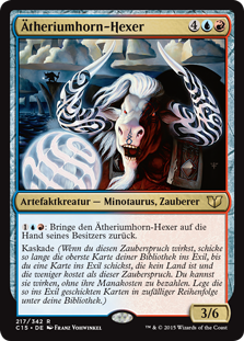 | Rules | : Return Etherium-Horn Sorcerer to its owner's hand. Cascade (When you cast this spell, exile cards from the top of your library until you exile a nonland card that costs less. You may cast it without paying its mana cost. Put the exiled cards on the bottom of your library in a random order.) |