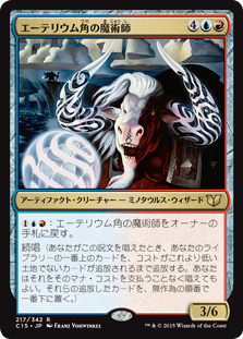 | Rules | : Return Etherium-Horn Sorcerer to its owner's hand. Cascade (When you cast this spell, exile cards from the top of your library until you exile a nonland card that costs less. You may cast it without paying its mana cost. Put the exiled cards on the bottom of your library in a random order.) |