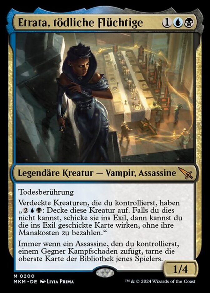| Rules | Deathtouch Face-down creatures you control have ": Turn this creature face up. If you can't, exile it, then you may cast the exiled card without paying its mana cost." Whenever an Assassin you control deals combat damage to an opponent, cloak the top card of that player's library. |