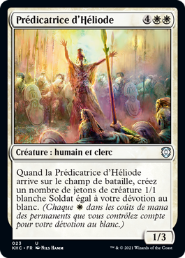 | Rules | When Evangel of Heliod enters the battlefield, create a number of 1/1 white Soldier creature tokens equal to your devotion to white. (Each in the mana costs of permanents you control counts toward your devotion to white.) |