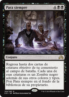 | Rules | Return up to two target creature cards from your graveyard to the battlefield. Each of those creatures is a black Zombie in addition to its other colors and types. Put Ever After on the bottom of its owner's library. |