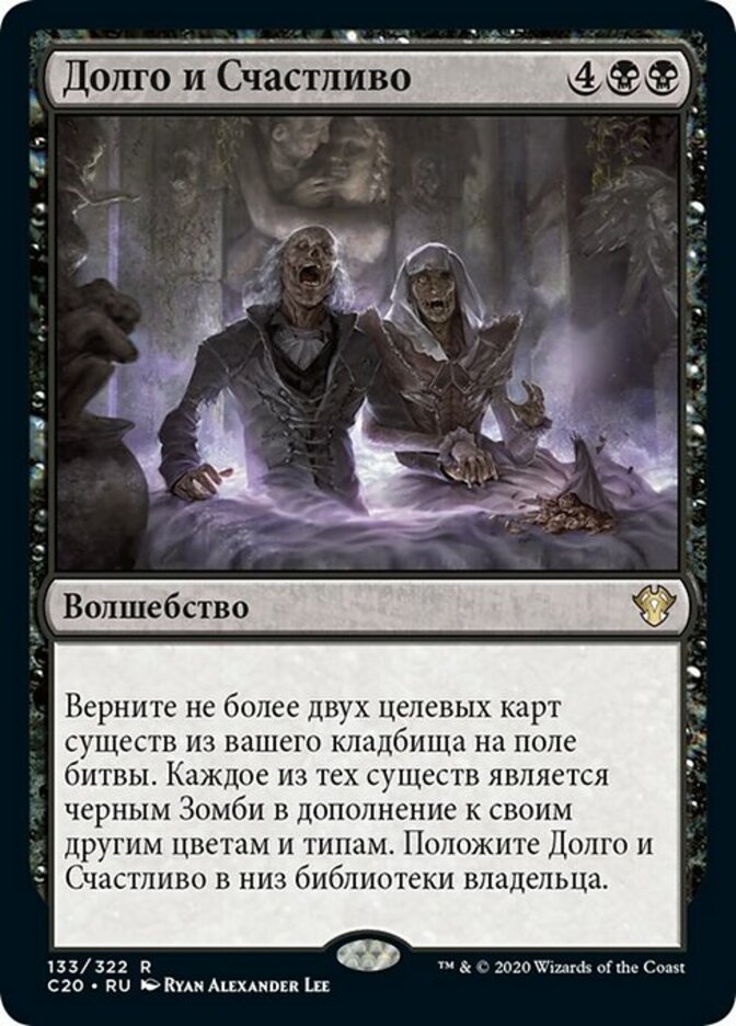 | Rules | Return up to two target creature cards from your graveyard to the battlefield. Each of those creatures is a black Zombie in addition to its other colors and types. Put Ever After on the bottom of its owner's library. |