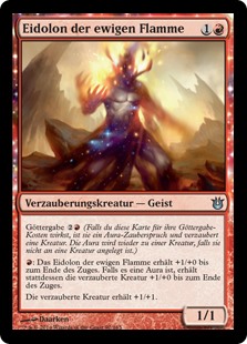 | Rules | Bestow (If you cast this card for its bestow cost, it's an Aura spell with enchant creature. It becomes a creature again if it's not attached to a creature.) : Everflame Eidolon gets +1/+0 until end of turn. If it's an Aura, enchanted creature gets +1/+0 until end of turn instead. Enchanted creature gets +1/+1. |