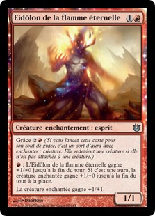 | Rules | Bestow (If you cast this card for its bestow cost, it's an Aura spell with enchant creature. It becomes a creature again if it's not attached to a creature.) : Everflame Eidolon gets +1/+0 until end of turn. If it's an Aura, enchanted creature gets +1/+0 until end of turn instead. Enchanted creature gets +1/+1. |