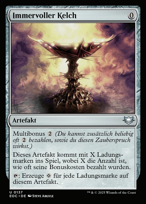 | Rules | Multikicker Everflowing Chalice enters the battlefield with a charge counter on it for each time it was kicked. : Add for each charge counter on Everflowing Chalice. |