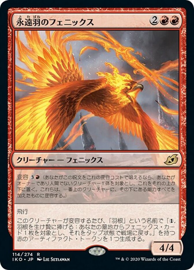 | Rules | Mutate (If you cast this spell for its mutate cost, put it over or under target non-Human creature you own. They mutate into the creature on top plus all abilities from under it.) Flying Whenever this creature mutates, create a red artifact token named Feather with ", Sacrifice Feather: Return target Phoenix card from your graveyard to the battlefield tapped." |