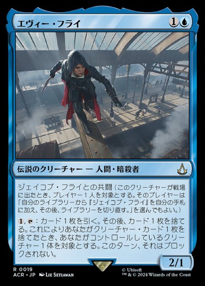 | Rules | Partner with Jacob Frye (When this creature enters the battlefield, target player may put Jacob into their hand from their library, then shuffle.) , : Draw a card, then discard a card. When you discard a creature card this way, target creature you control can't be blocked this turn. |
