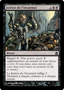 | Rules | Buyback (You may pay an additional as you cast this spell. If you do, put this card into your hand as it resolves.) Evincar's Justice deals 2 damage to each creature and each player. |