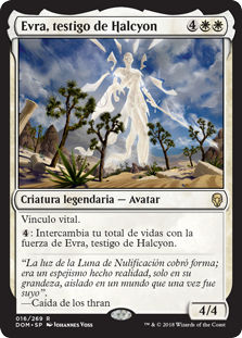 | Rules | Lifelink : Exchange your life total with Evra, Halcyon Witness's power. |