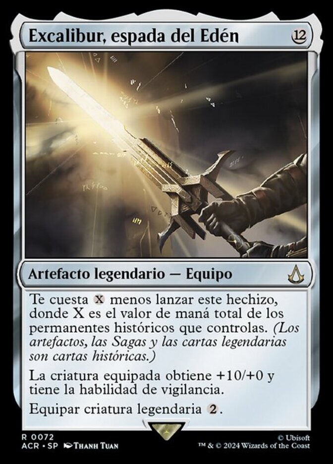 | Rules | This spell costs less to cast, where X is the total mana value of historic permanents you control. (Artifacts, legendaries, and Sagas are historic.) Equipped creature gets +10/+0 and has vigilance. Equip legendary creature |