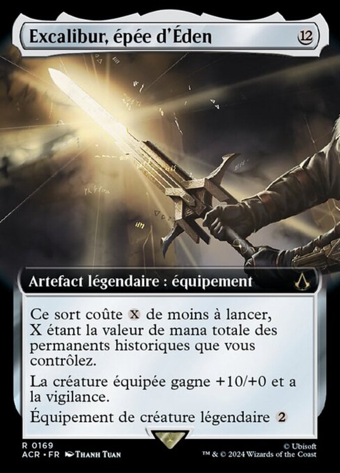 | Rules | This spell costs less to cast, where X is the total mana value of historic permanents you control. (Artifacts, legendaries, and Sagas are historic.) Equipped creature gets +10/+0 and has vigilance. Equip legendary creature |