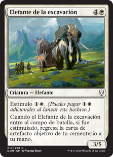 | Rules | Kicker (You may pay an additional as you cast this spell.) When Excavation Elephant enters the battlefield, if it was kicked, return target artifact card from your graveyard to your hand. |
