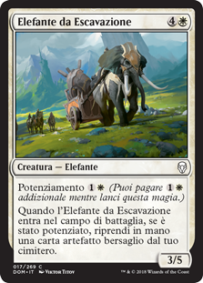 | Rules | Kicker (You may pay an additional as you cast this spell.) When Excavation Elephant enters the battlefield, if it was kicked, return target artifact card from your graveyard to your hand. |
