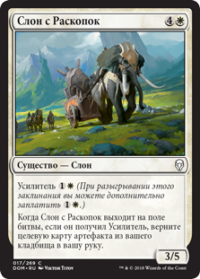 | Rules | Kicker (You may pay an additional as you cast this spell.) When Excavation Elephant enters the battlefield, if it was kicked, return target artifact card from your graveyard to your hand. |