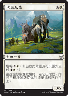 | Rules | Kicker (You may pay an additional as you cast this spell.) When Excavation Elephant enters the battlefield, if it was kicked, return target artifact card from your graveyard to your hand. |