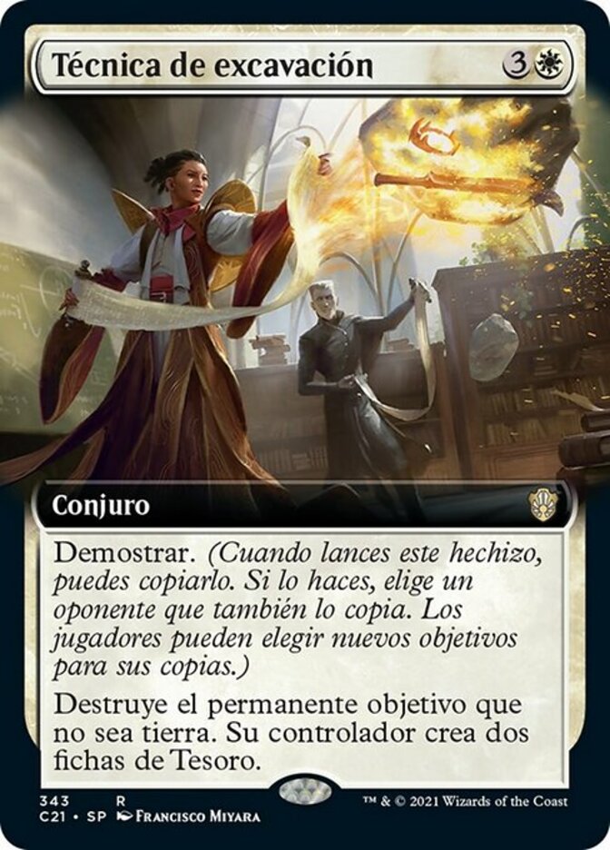 | Rules | Demonstrate (When you cast this spell, you may copy it. If you do, choose an opponent to also copy it. Players may choose new targets for their copies.) Destroy target nonland permanent. Its controller creates two Treasure tokens. |