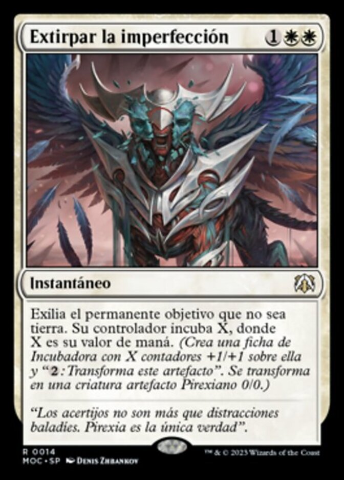 | Rules | Exile target nonland permanent. Its controller incubates X, where X is its mana value. (They create an Incubator token with X +1/+1 counters on it and ": Transform this artifact." It transforms into a 0/0 Phyrexian artifact creature.) |