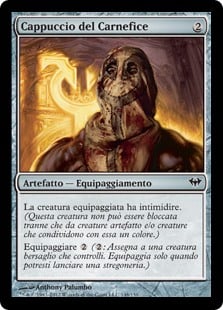 | Rules | Equipped creature has intimidate. (This creature can't be blocked except by artifact creatures and/or creatures that share a color with it.) Equip (: Attach to target creature you control. Equip only as a sorcery.) |