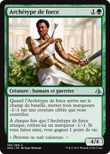 | Rules | When Exemplar of Strength enters the battlefield, put three -1/-1 counters on target creature you control. Whenever Exemplar of Strength attacks, remove a -1/-1 counter from it. If you do, you gain 1 life. |