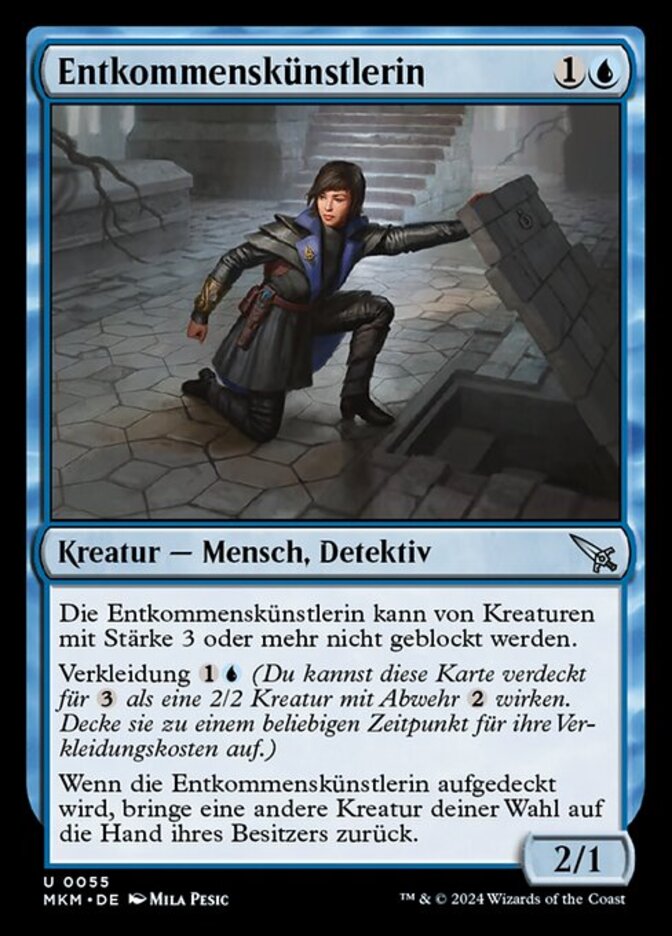 | Rules | Exit Specialist can't be blocked by creatures with power 3 or greater. Disguise (You may cast this card face down for as a 2/2 creature with ward . Turn it face up any time for its disguise cost.) When Exit Specialist is turned face up, return another target creature to its owner's hand. |