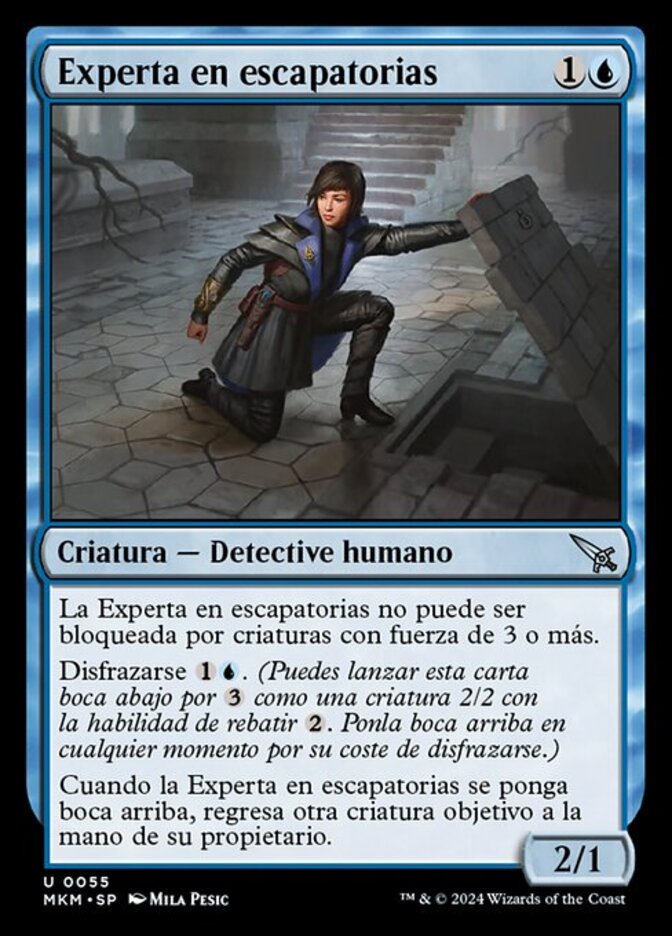 | Rules | Exit Specialist can't be blocked by creatures with power 3 or greater. Disguise (You may cast this card face down for as a 2/2 creature with ward . Turn it face up any time for its disguise cost.) When Exit Specialist is turned face up, return another target creature to its owner's hand. |