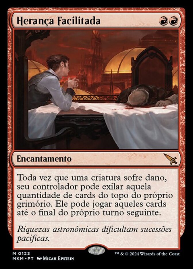 | Rules | Whenever a creature is dealt damage, its controller may exile that many cards from the top of their library. They may play those cards until the end of their next turn. |