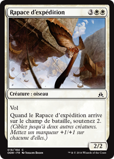 | Rules | Flying When Expedition Raptor enters the battlefield, support 2. (Put a +1/+1 counter on each of up to two other target creatures.) |