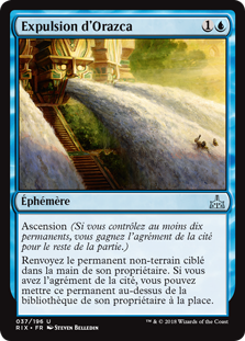 | Rules | Ascend (If you control ten or more permanents, you get the city's blessing for the rest of the game.) Return target nonland permanent to its owner's hand. If you have the city's blessing, you may put that permanent on top of its owner's library instead. |