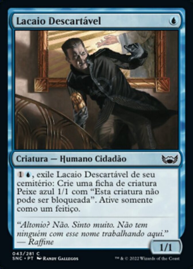 | Rules | , Exile Expendable Lackey from your graveyard: Create a 1/1 blue Fish creature token with "This creature can't be blocked." Activate only as a sorcery. |