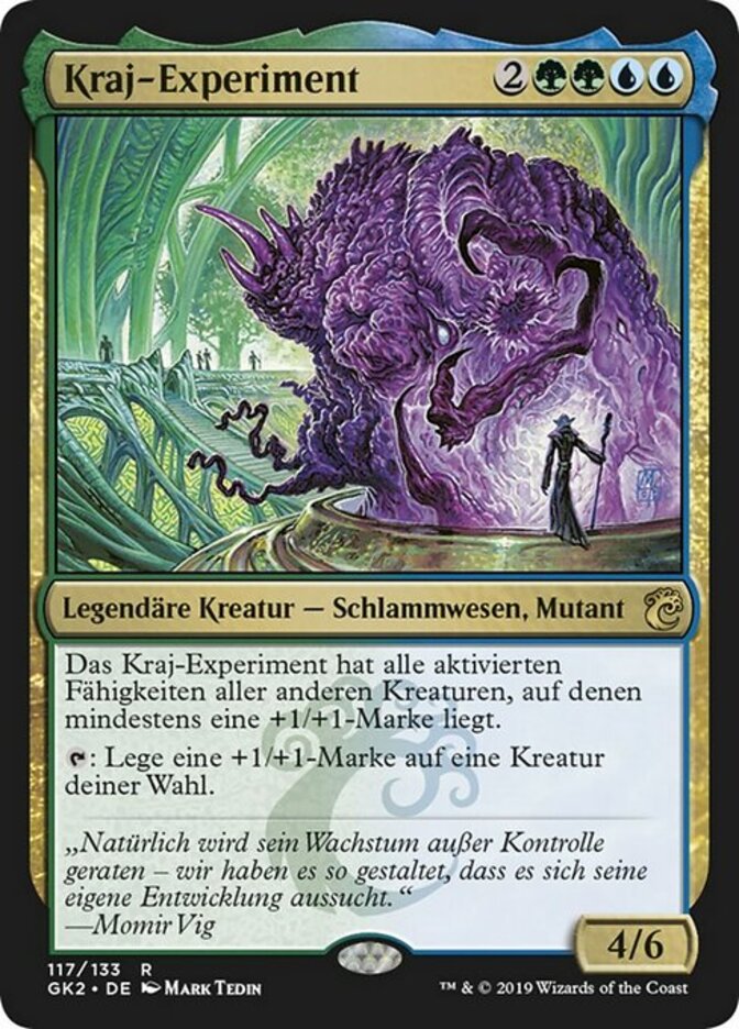 | Rules | Experiment Kraj has all activated abilities of each other creature with a +1/+1 counter on it. : Put a +1/+1 counter on target creature. |