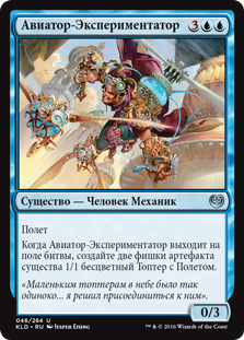 | Rules | Flying When Experimental Aviator enters the battlefield, create two 1/1 colorless Thopter artifact creature tokens with flying. |